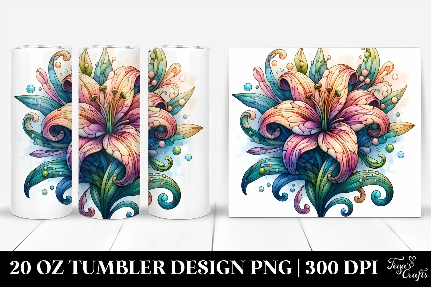 detailed Vibrant Pastel Wooden Stained Lily | 20 oz Tumbler example image 1