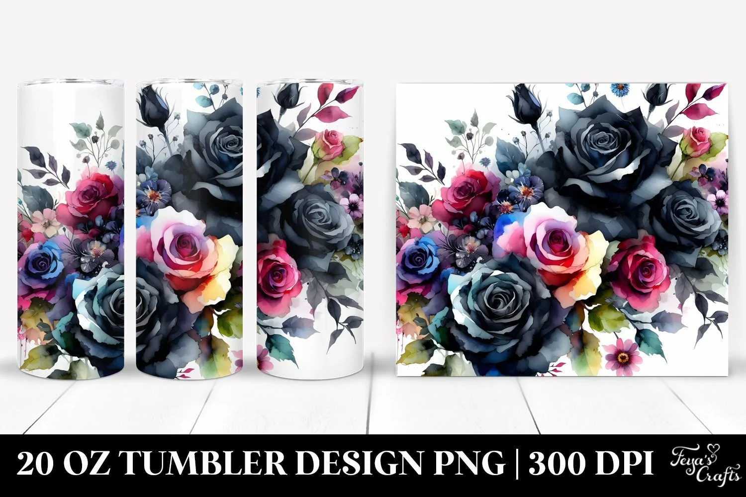 Watercolor Clipart Vibrant Png Sublimation Tumbler Blackroses