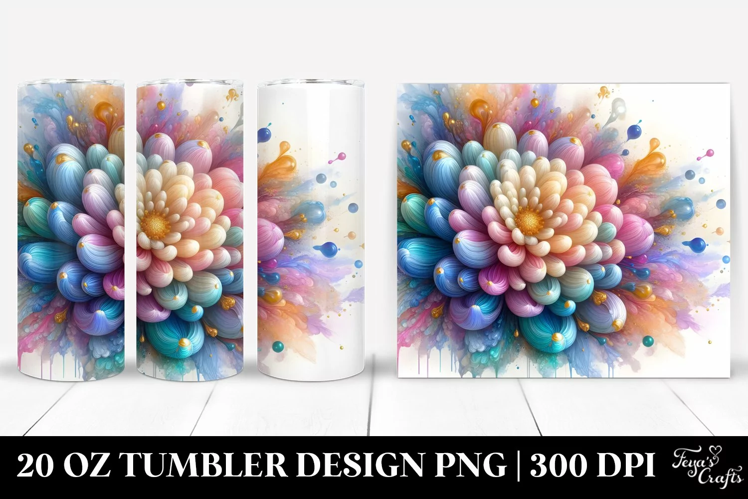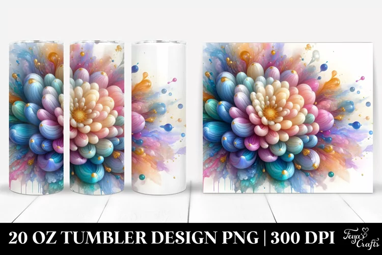 Abstract Clipart Vibrant Png Pastel Glass Chrysanthemum Sublimation Tumbler Insertions