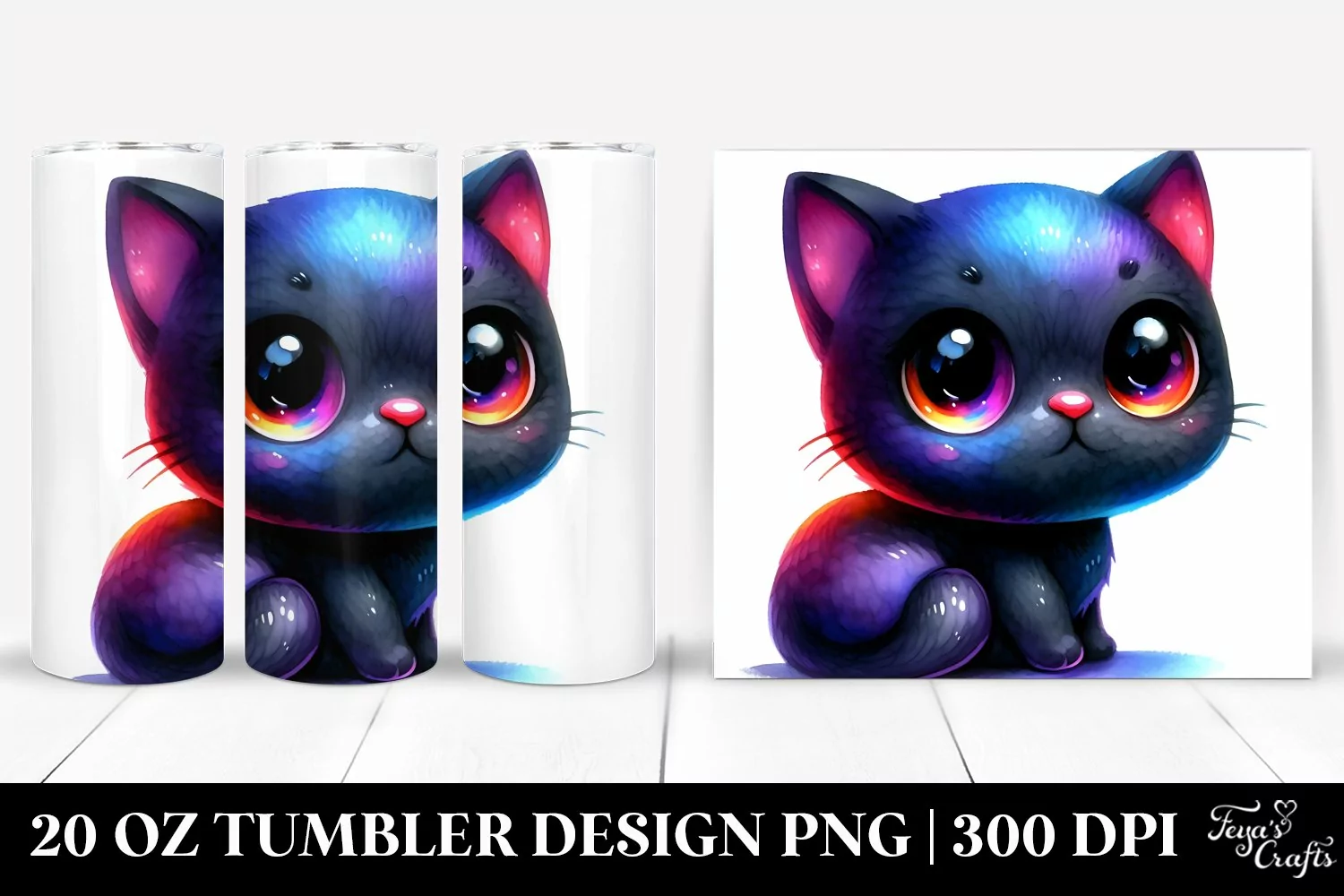Watercolor Cute Drawing Clipart Vibrant Png Sublimation Tumbler Jeffkoonsstyle Babyblackcat
