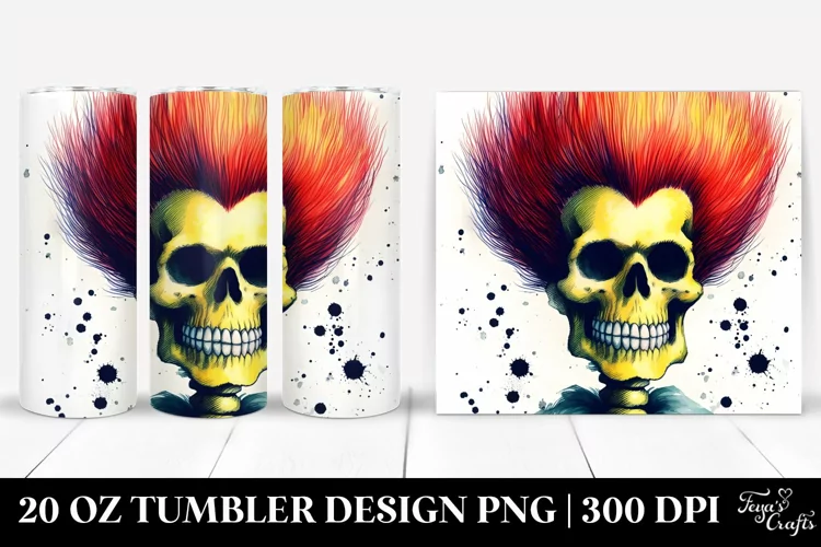 Clipart Png Sublimation Tumbler Whitebackground Washedwatercolor Elementsnottouchingcanvasedges Skullwithhair Retrohalloweenimage Bartsimpsonstyle