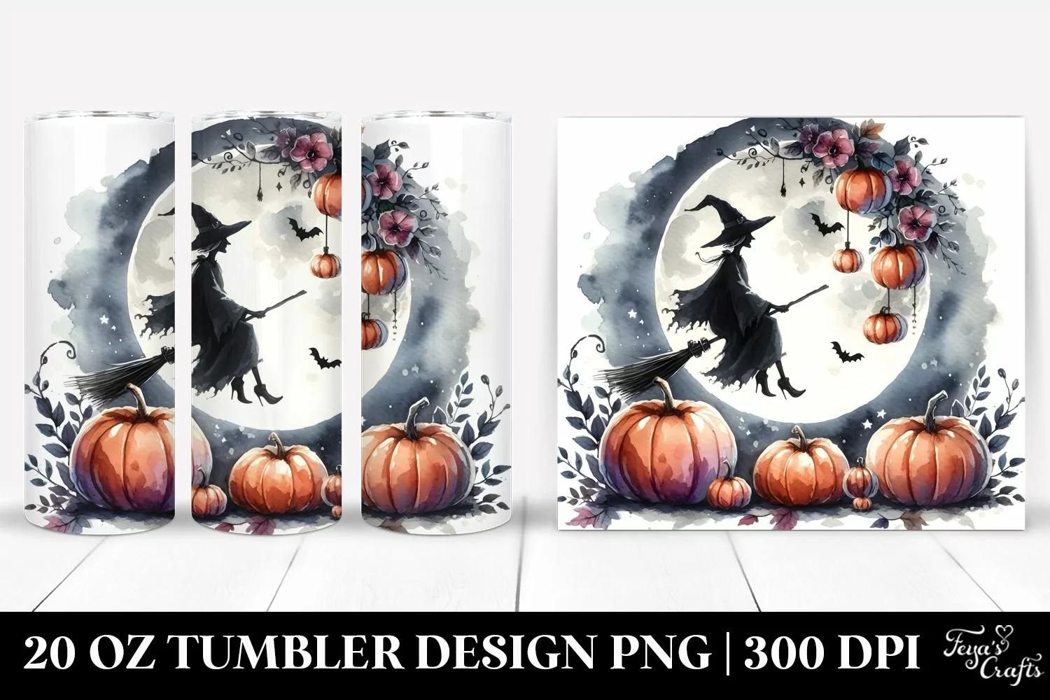 Watercolor Simple Halloween Clipart Witch Png Moon Washed Sublimation Tumbler