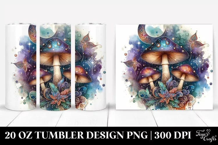 Watercolor Celestial Shiny Clipart Detailed Png Mushroom Mystical Sublimation Tumbler