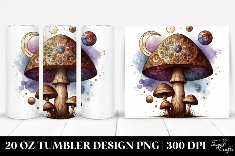 Celestial Wooden Clipart Png Mushroom Mystical Sublimation Tumbler Watercolorsplash Stainedglass