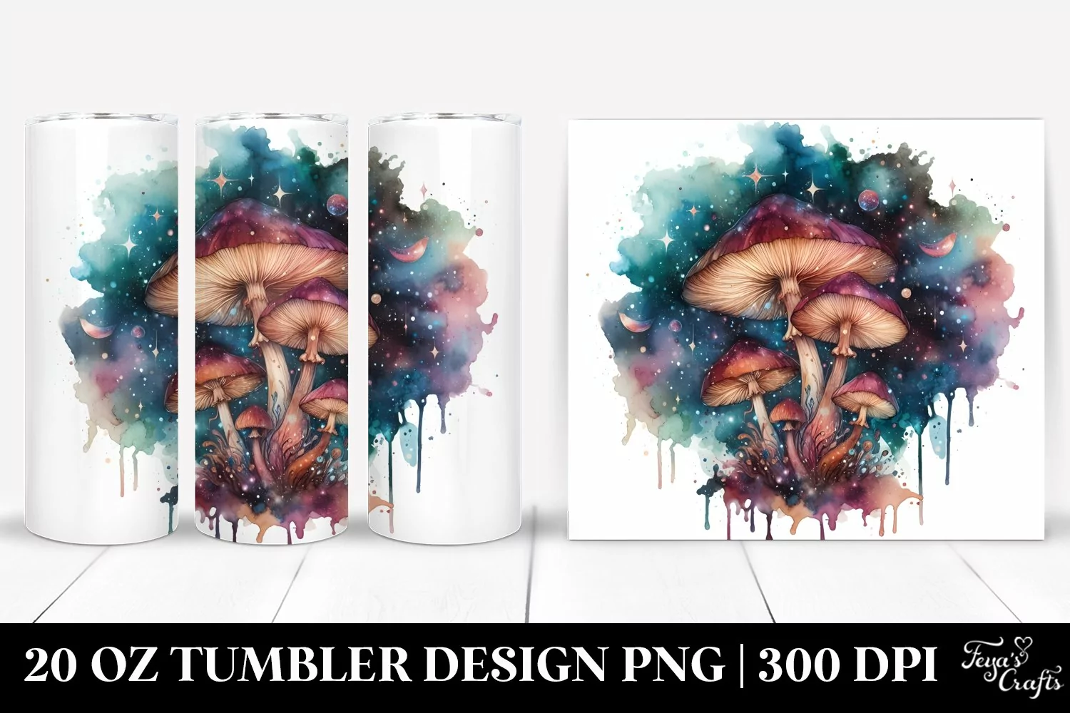 Celestial Clipart Png Mushroom Mystical Sublimation Tumbler Whitebackground Watercolorsplash