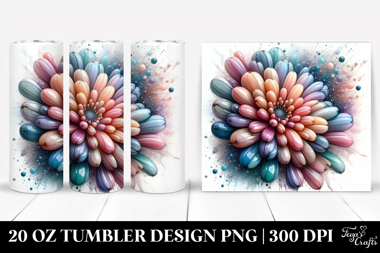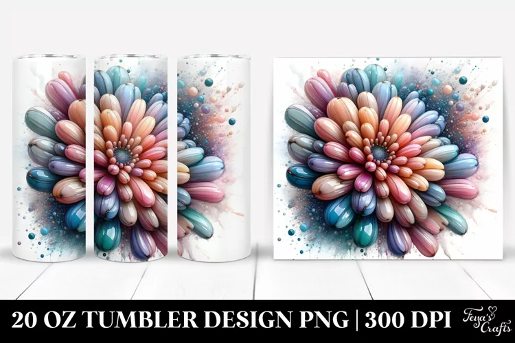 Glossy Abstract Clipart Vibrant Png Pastel Glass Chrysanthemum Sublimation Tumbler