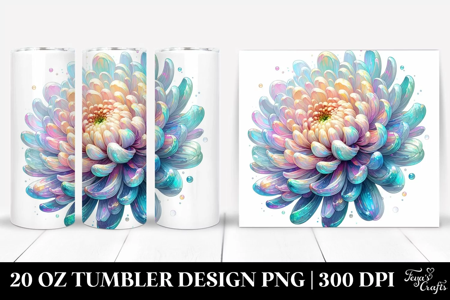 Shiny Clipart Detailed Vibrant Png Pastel Glass Chrysanthemum Sublimation Tumbler