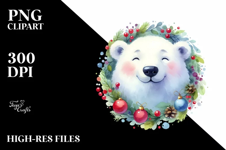 Vibrant Christmas Polar Bear, PNG example image 1
