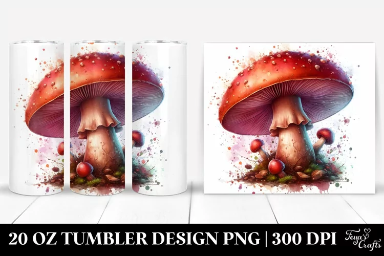 Watercolor Glossy Splash Clipart Background Png Mushroom White Sublimation Tumbler