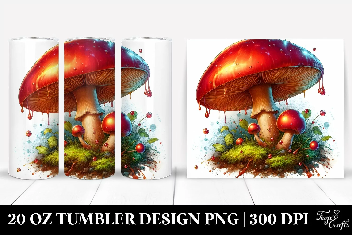 detailed Shiny Mushroom Watercolor Splash 20 oz Tumbler example image 1