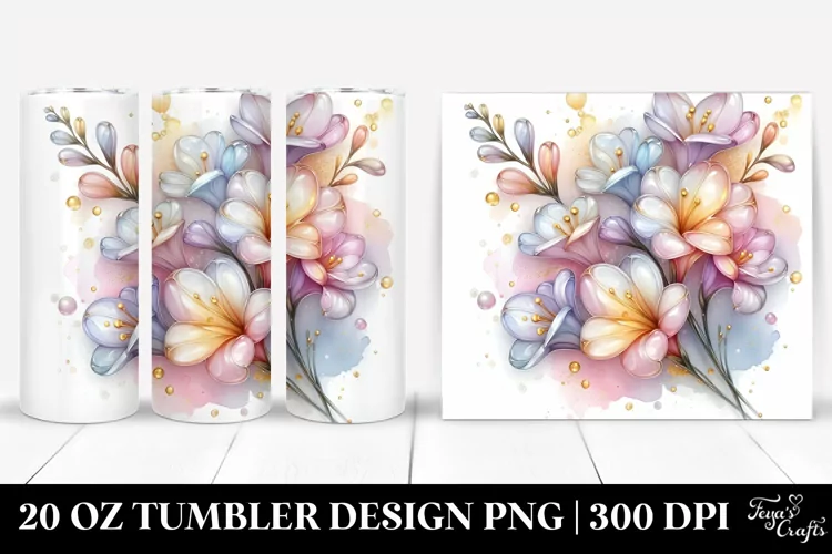 Watercolor Shiny Abstract Clipart Png Pastel Glass Sublimation Tumbler Freesia