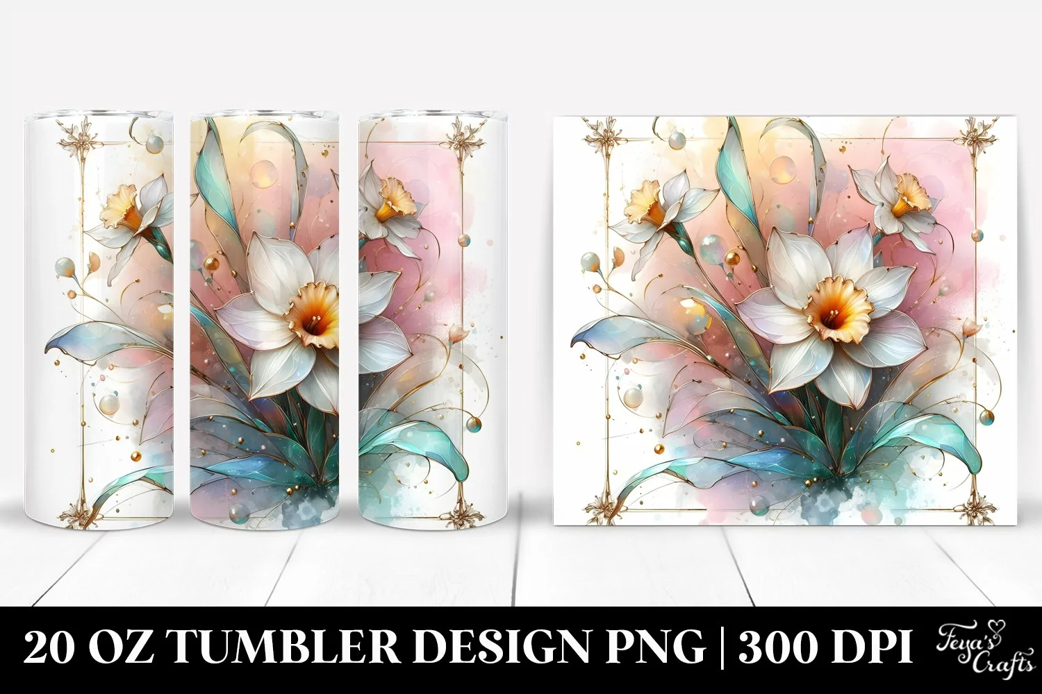 Glossy Golden Abstract Clipart Png Pastel Glass Sublimation Tumbler Narcissus