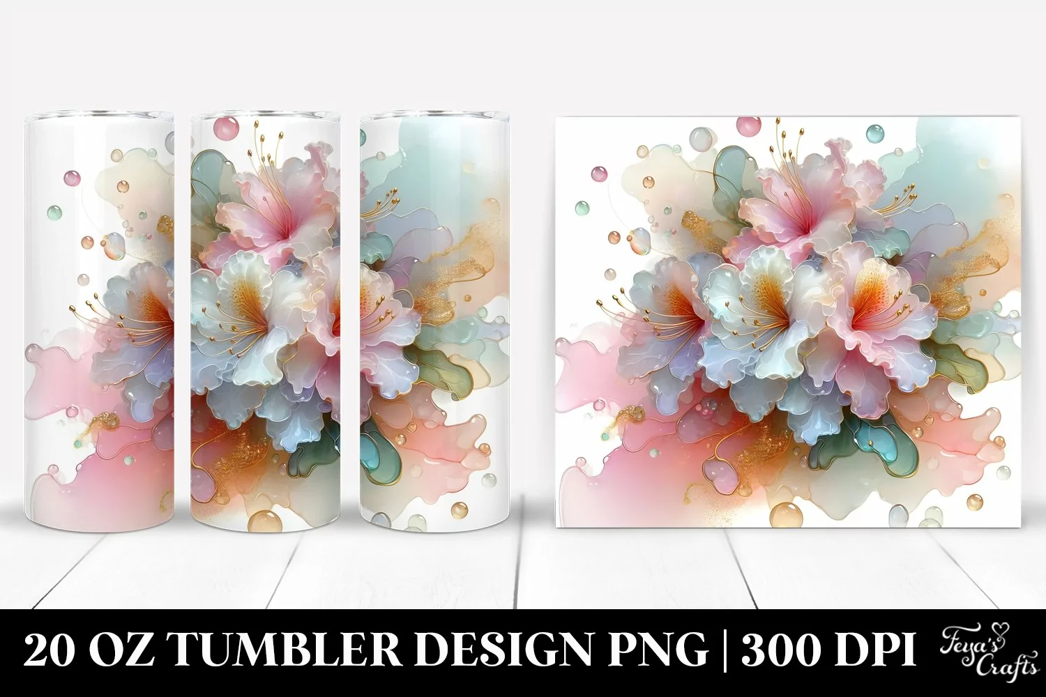 Glossy Golden Abstract Clipart Png Pastel Glass Rhododendron Sublimation Tumbler