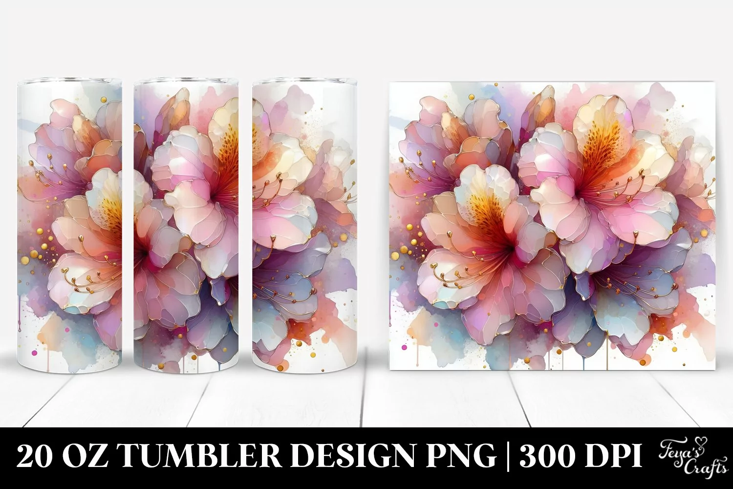 Watercolor Glossy Abstract Clipart Png Pastel Glass Rhododendron Sublimation Tumbler