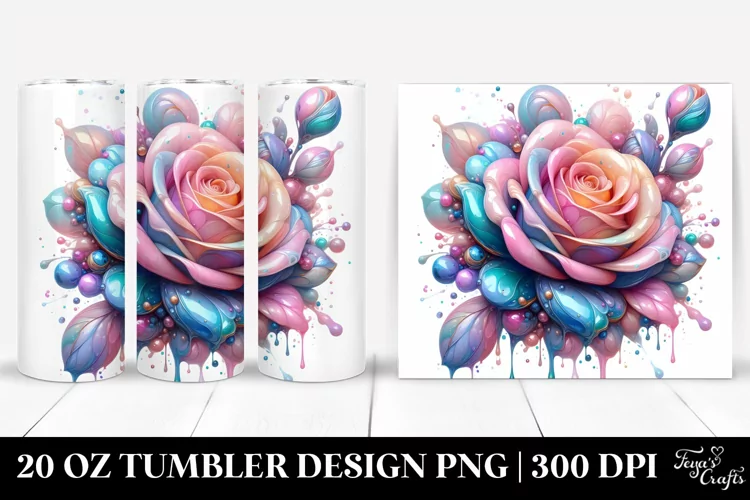 Glossy Clipart Rose Detailed Vibrant Png Pastel Glass Sublimation Tumbler
