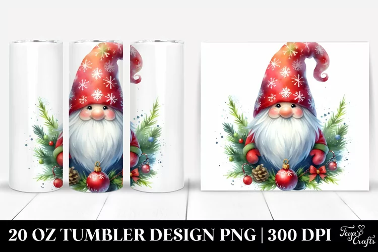 Clipart Png Sublimation Tumbler Whitebackground Vibrantwatercolor Centered Christmasgnome