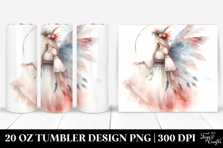 Washed Boho Fairy Watercolor Tumbler Design | 20 oz Tumbler example image 1