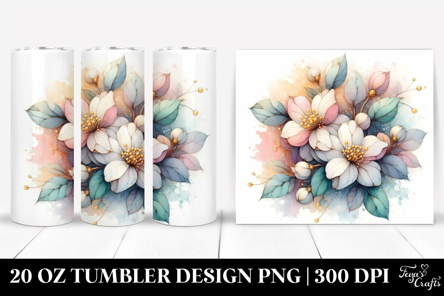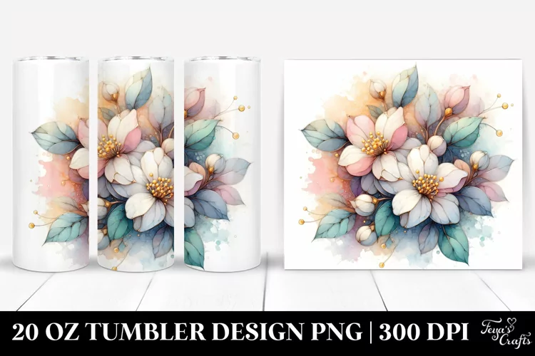 Watercolor Golden Abstract Clipart Png Pastel Sublimation Jasmine Tumbler Stainedglass