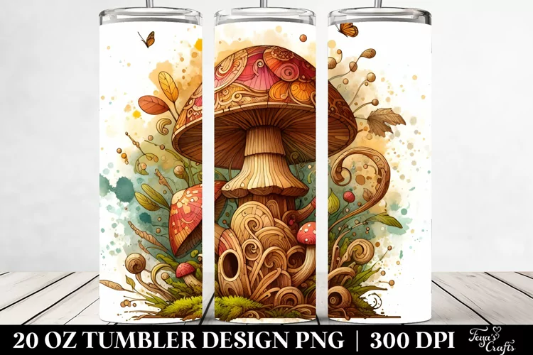 Watercolor Wooden Splash Clipart Vibrant Png Mushroom Sublimation Tumbler Stainedglass