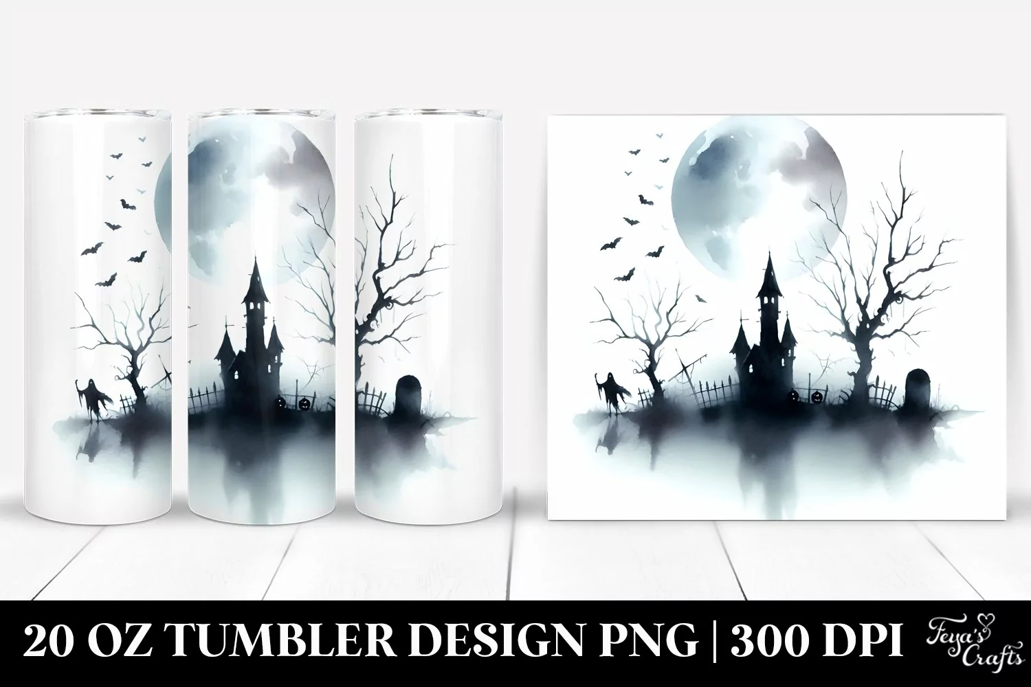 Watercolor Simple Halloween Clipart Png Scene Eerie Sublimation Tumbler Echoes