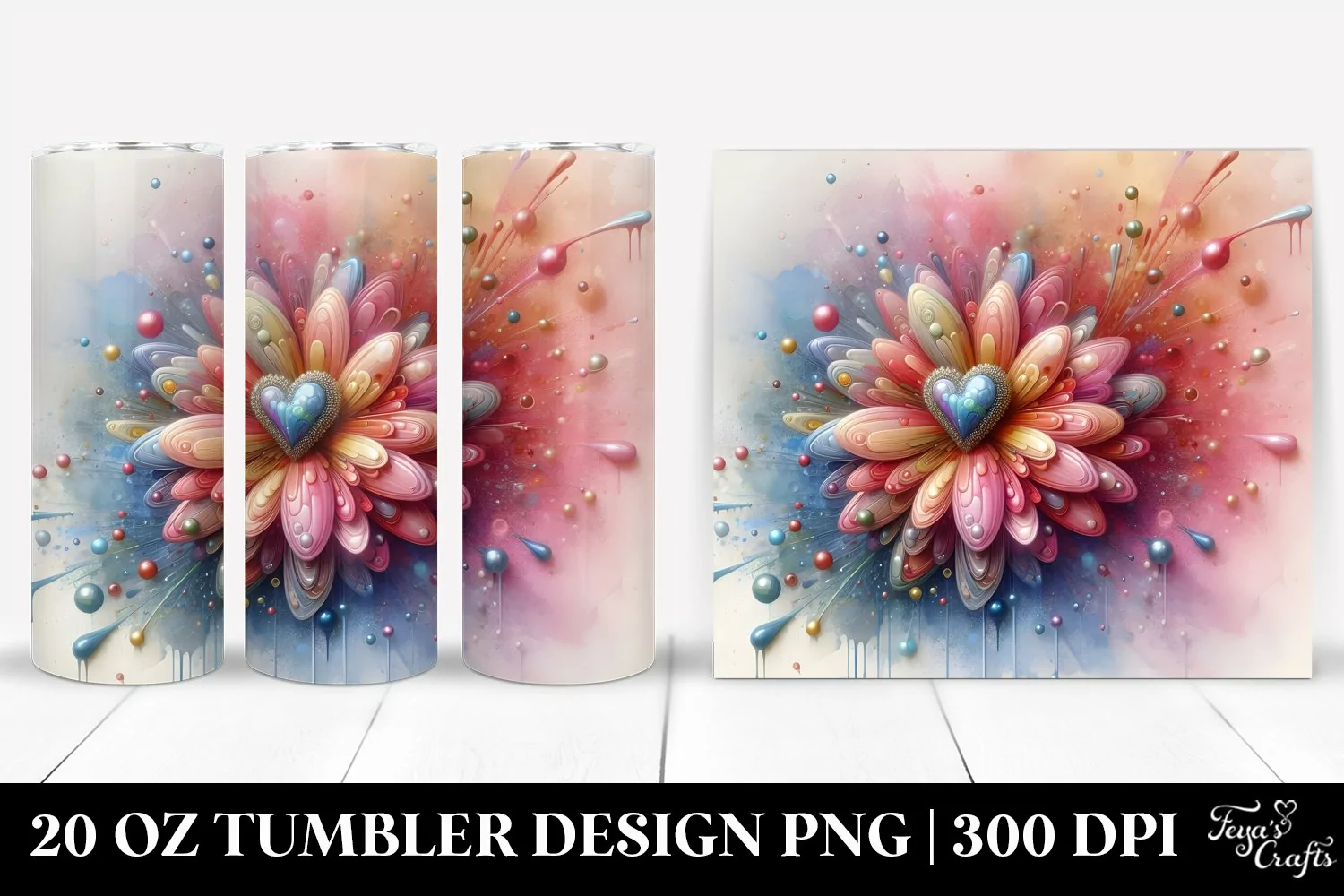 Abstract Clipart Vibrant Png Pastel Glass Metallic Chrysanthemum Sublimation Tumbler