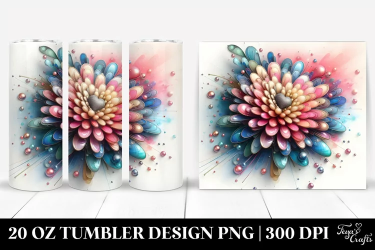 Abstract Clipart Vibrant Png Pastel Glass Metallic Chrysanthemum Sublimation Tumbler