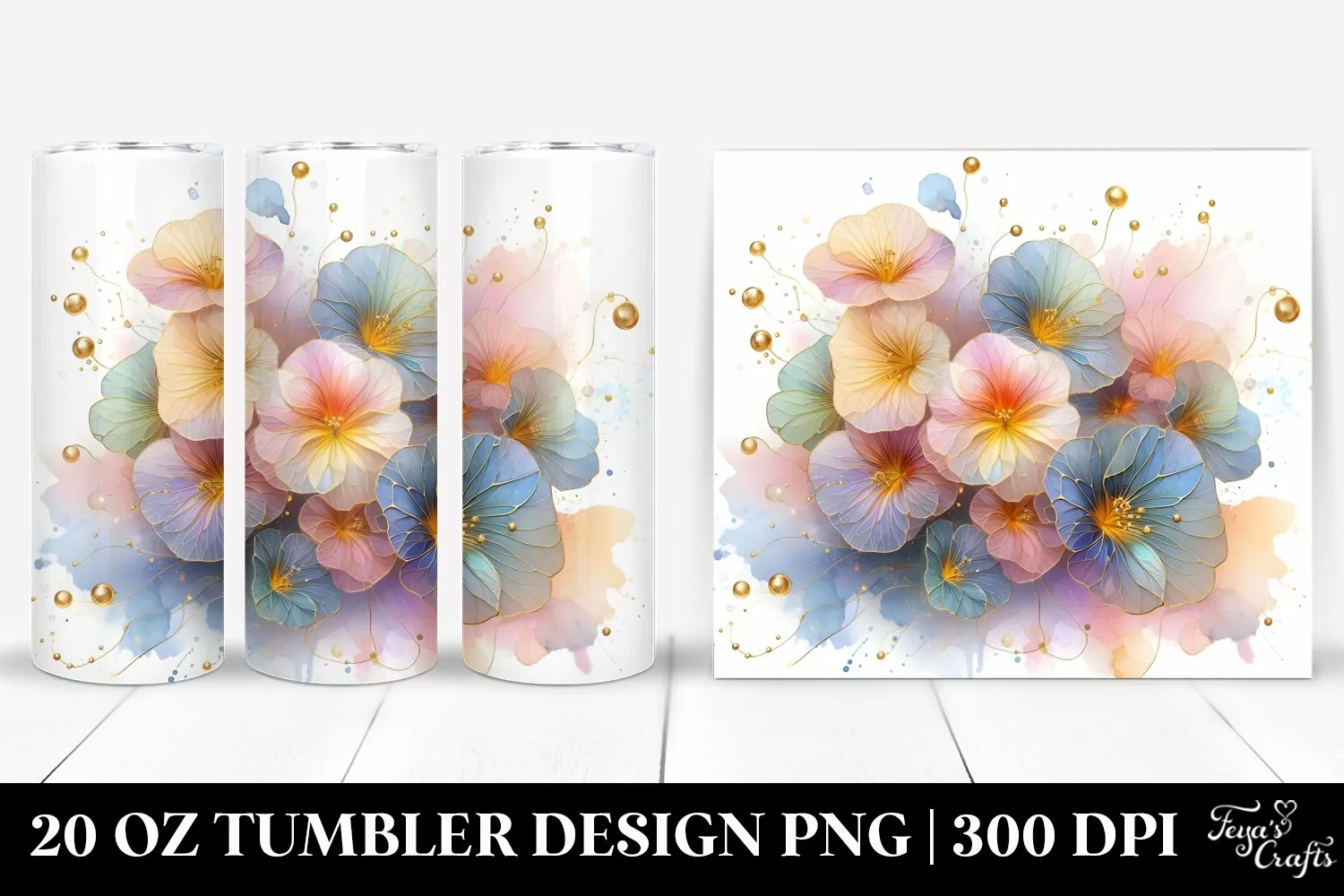Watercolor Splash Clipart Png Glass Sublimation Tumbler Nasturtium Goldeninsertions Abstractshiny