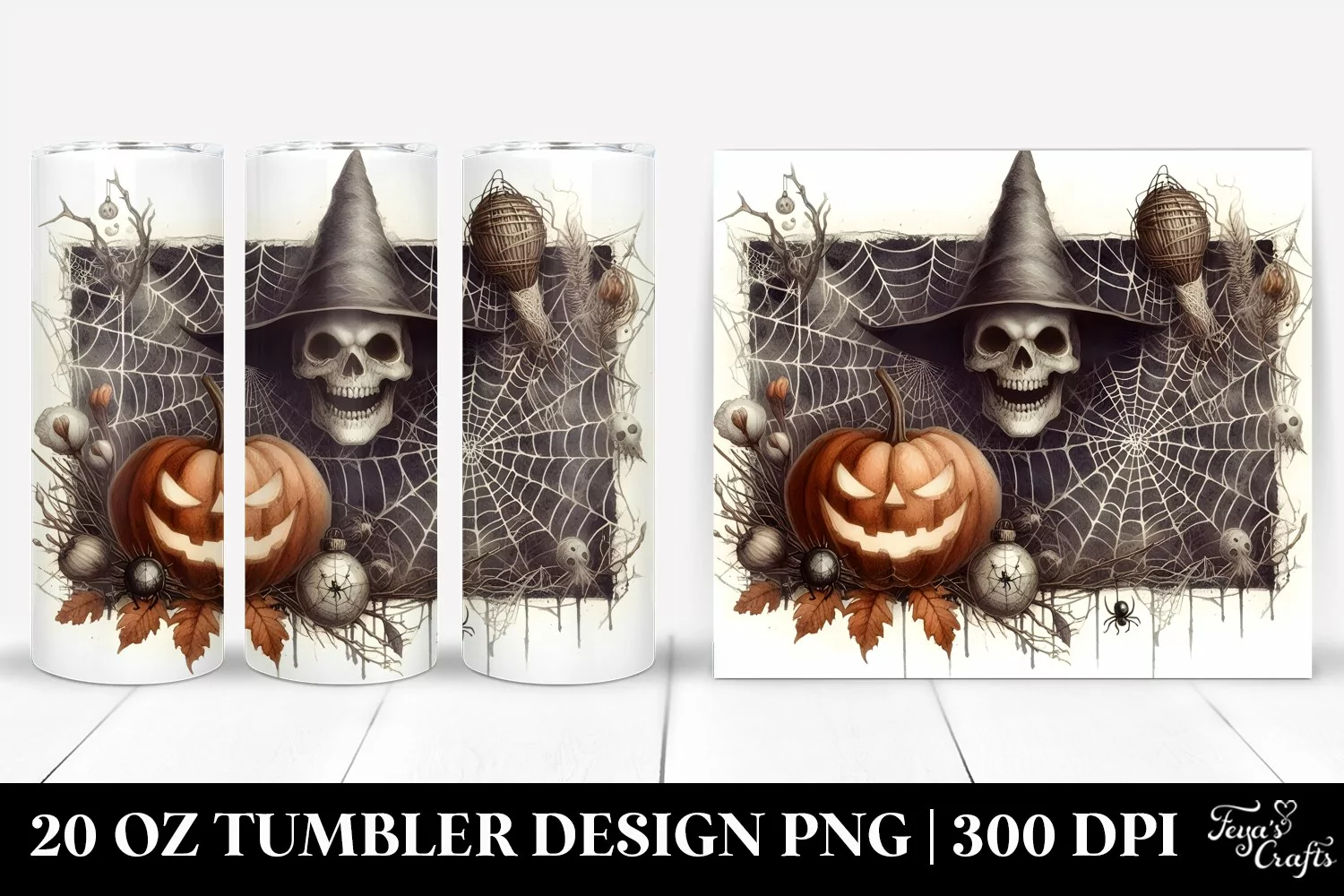 Watercolor Retro Halloween Spiderweb | 20 oz Tumbler example image 1