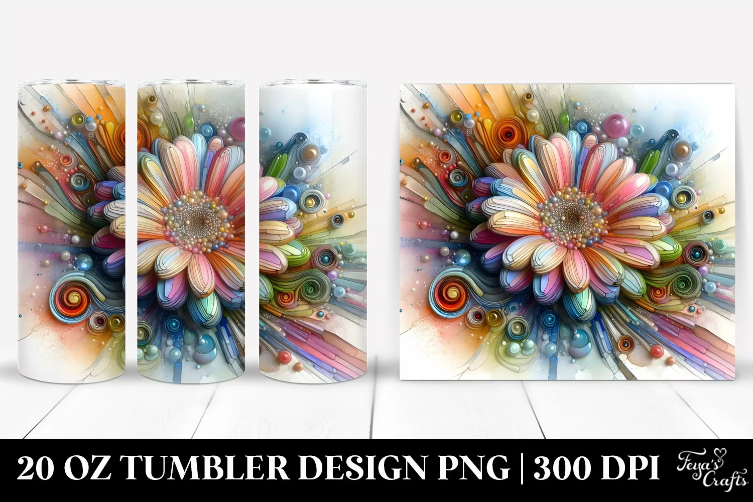 Watercolor Abstract Clipart Vibrant Png Pastel Gerbera Sublimation Tumbler Glassinsertions