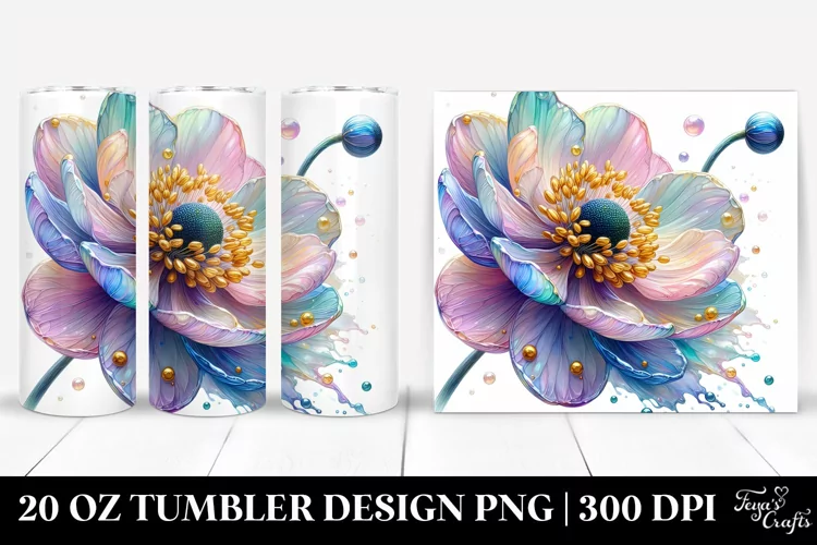 Glossy Clipart Detailed Anemone Vibrant Png Transparent Pastel Sublimation Tumbler