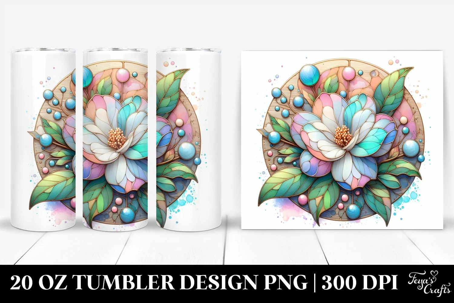 Wooden Clipart Detailed Vibrant Png Small Sublimation Tumbler Gardenia Stainedglass