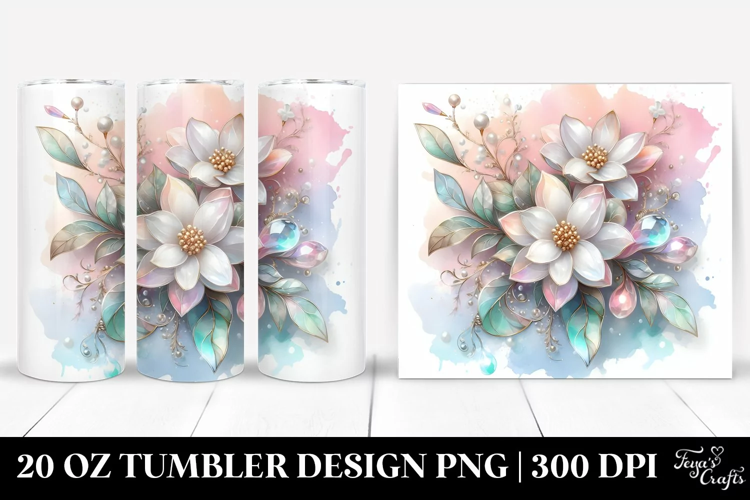 Watercolor Shiny Clipart Png Pastel Glass Metallic Sublimation Jasmine Tumbler