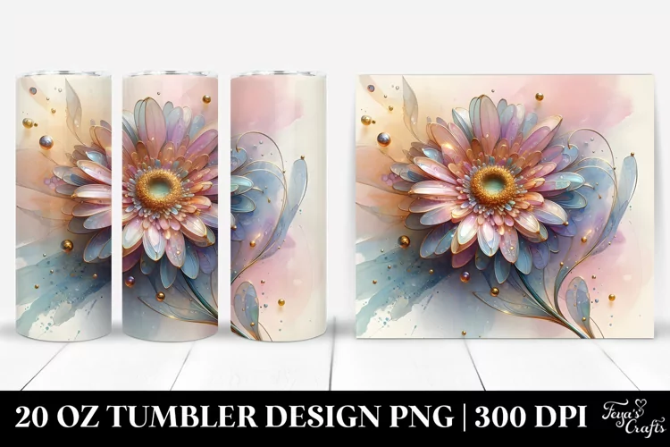 Watercolor Shiny Abstract Clipart Png Pastel Glass Gerbera Sublimation Tumbler