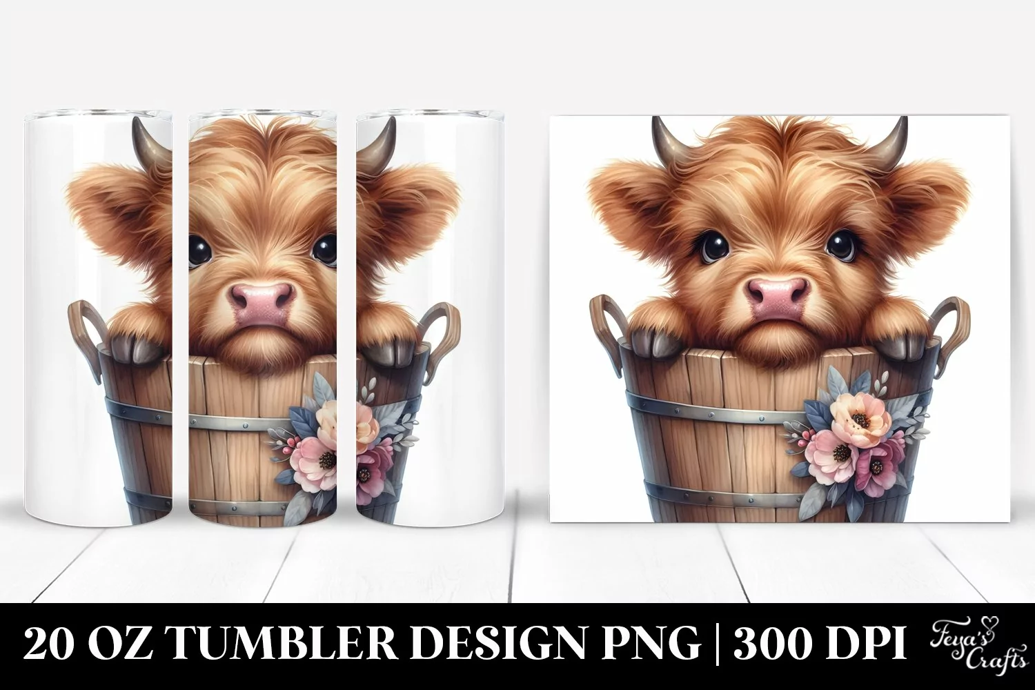 Similar Design Products to Cute Baby Highland Cow Wood Bucket Flowers | 20 oz Tumbler
