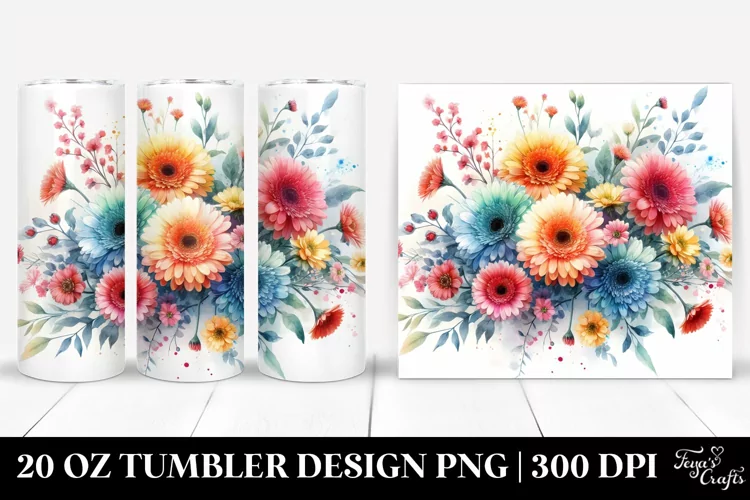 Watercolor Colorful Clipart Png Washed Sublimation Tumbler Whitebackground Smallgerbera