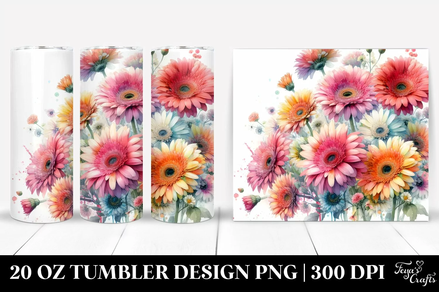 Watercolor Colorful Clipart Png Washed Gerbera Sublimation Tumbler