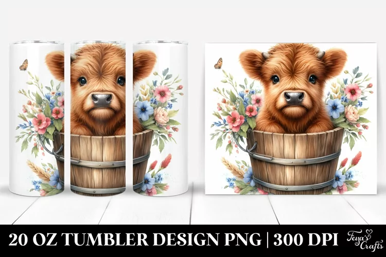 Similar Design Products to Cute Baby Highland Cow, Wood Bucket | 20 oz Tumbler
