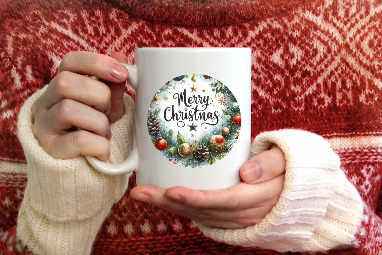 Watercolor Ornament Round Sticker Christmas Winter Png Sublimation Merrychristmas Typetreatment