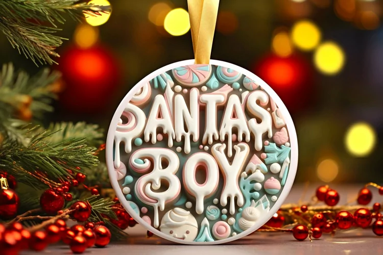 Santa's Boy Round Ornament Sublimation PNG example image 1