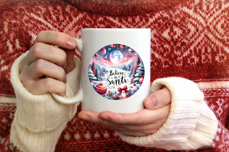 Watercolor Ornament Round Sticker Christmas Winter Png Santa Sublimation Largetext