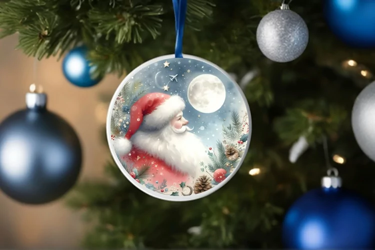 Watercolor Ornament Simple Round Sticker Christmas Winter Png Santa Sublimation