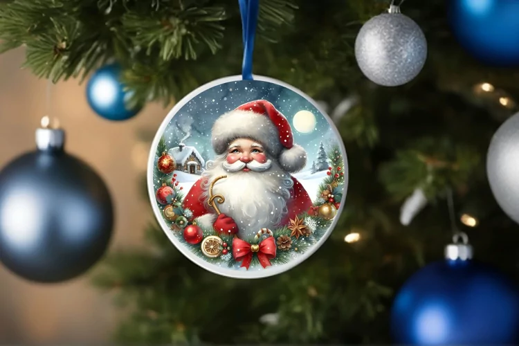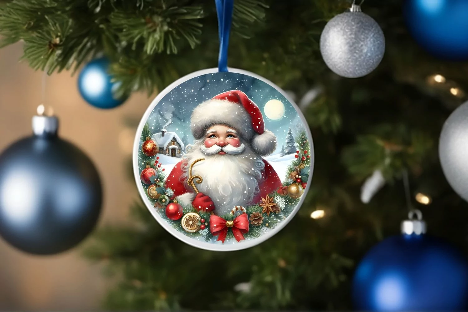 Watercolor Ornament Round Sticker Christmas Winter Png Santa Sublimation