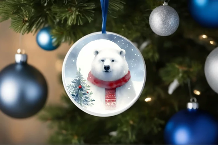 Ornament Round Sticker Christmas Winter Png Sublimation Very Polarbear Centered