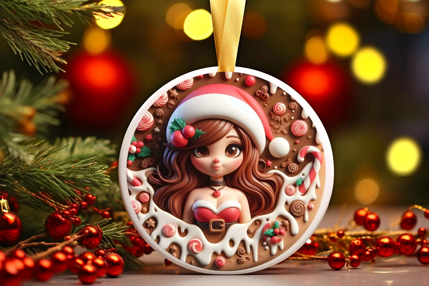 3d Ornament Round Sticker Christmas Winter Png Sublimation Santa'sgirl Meltingedges