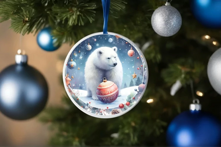 Ornament Round Sticker Christmas Colorful Winter Png Pastel Sublimation Polarbear