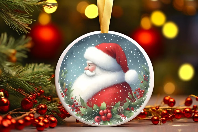 Watercolor Ornament Simple Round Sticker Christmas Winter Png Santa Sublimation