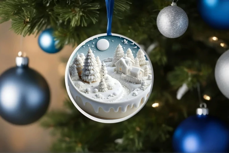 3d Ornament Round Sticker Christmas Winter Png Sublimation Winterscene Meltingedges