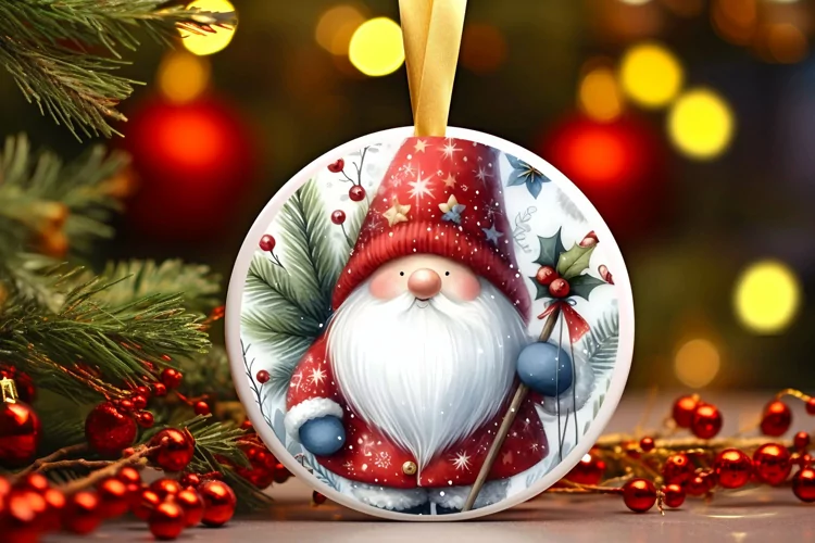 Watercolor Ornament Round Sticker Christmas Winter Vibrant Png Sublimation Verysimple