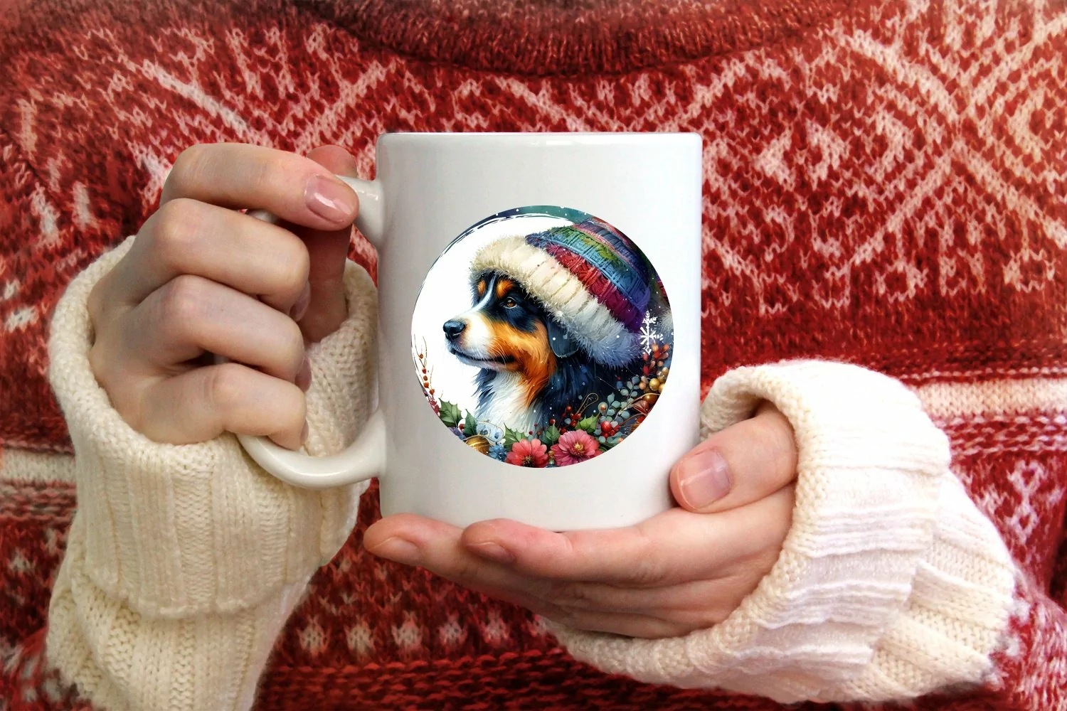 Watercolor Ornament Round Christmas Winter Clipart Vibrant Png Santa Dog