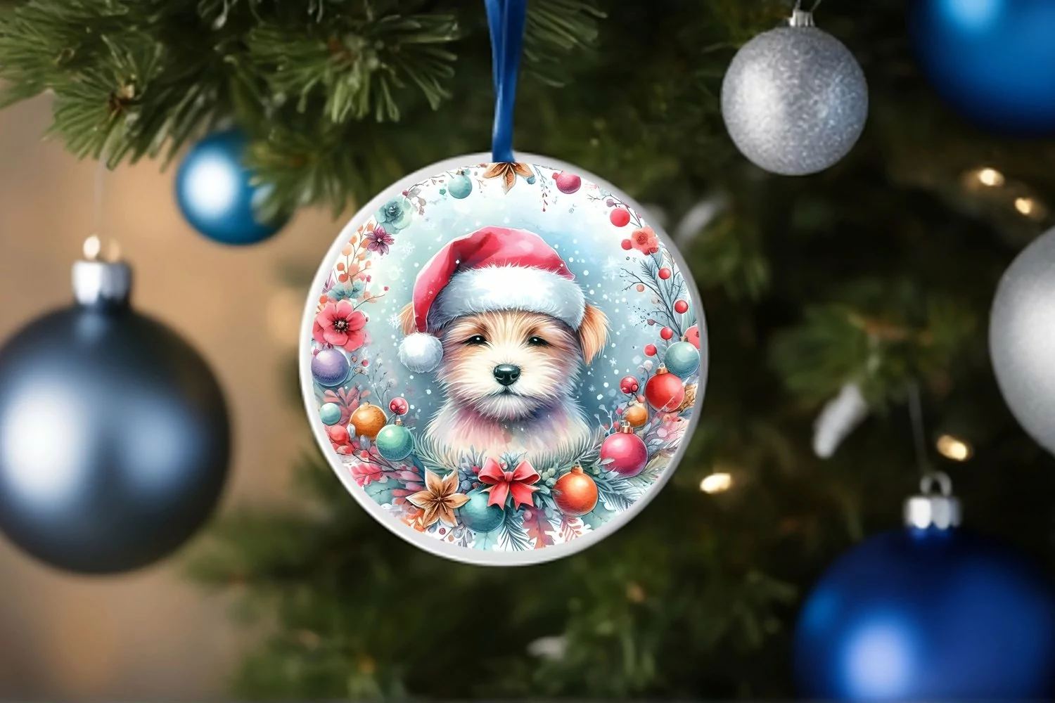 Similar Design Products to Colorful Pastel Dog Christmas Ornament PNG